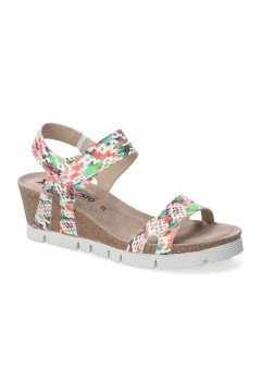 Chaussures femme – Dominica multicoloured En chaussant la sandale Dominica, vous serez impressionnée par son confort et sa stabilité. Sa semelle épaisse vous isolera parfaitement du sol tandis que ses brides épouseront joliment les courbes de vos pieds.