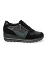 La basket Abby est un modèle polyvalent qui se distingue par ses matériaux de haute qualité. Le mélange de cuir lisse et de nubuck crée un contraste subtil et une texture intéressante. Le design est rehaussé par des motifs subtils sur les côtés et un zip décoratif sur le dessus. Les fermetures et lacets permettent un ajustement facile et précis, tandis que la semelle compensée légère assure un confort de marche exceptionnel. Cette chaussure est le choix parfait pour celles qui recherchent un style unique sans sacrifier le confort.