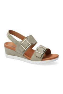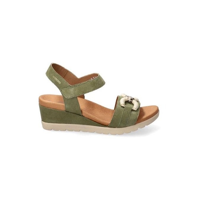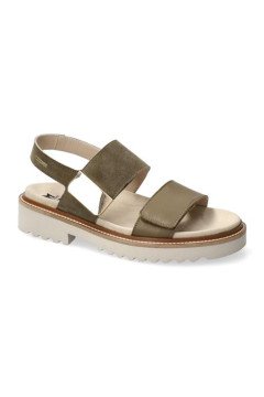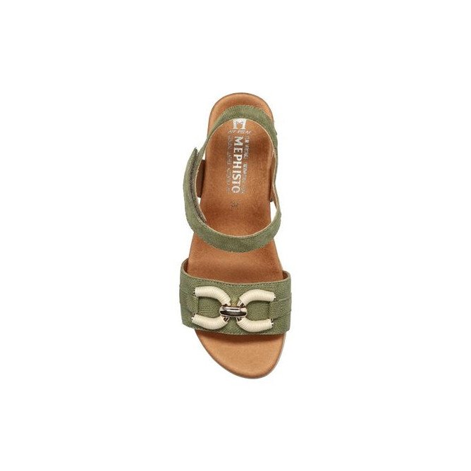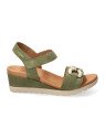 Sandale Youna Mephisto Khaki, le compensé en cuir velours au style chic et naturel.